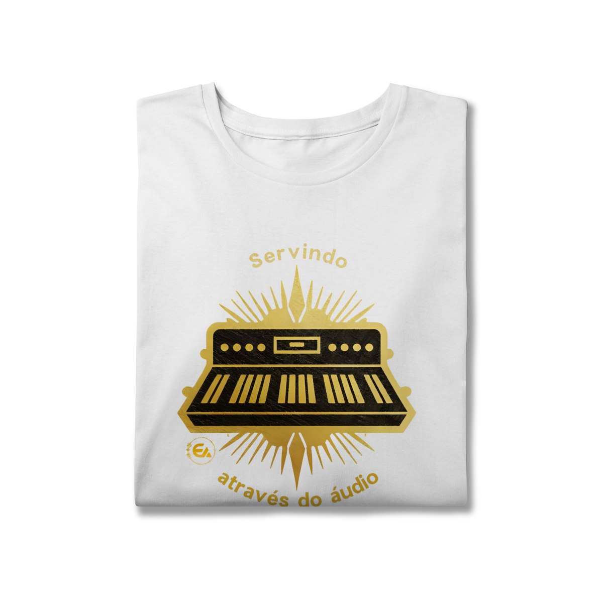 A estampa “Servindo Através do Áudio” carrega esse propósito com estilo, unindo fé e paixão em um design moderno e significativo.